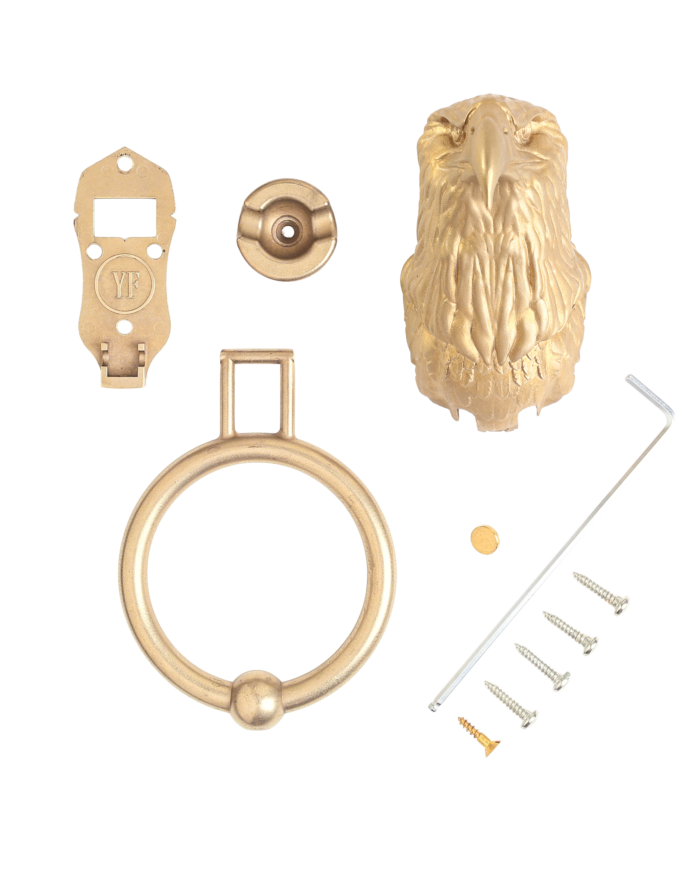 Each knocker is cast in a marine-grade bronze alloy with the warm golden tone most people call brass. It arrives bright and ages dark. The patina is earned, not applied. It can always be brought back with a bit of polish.