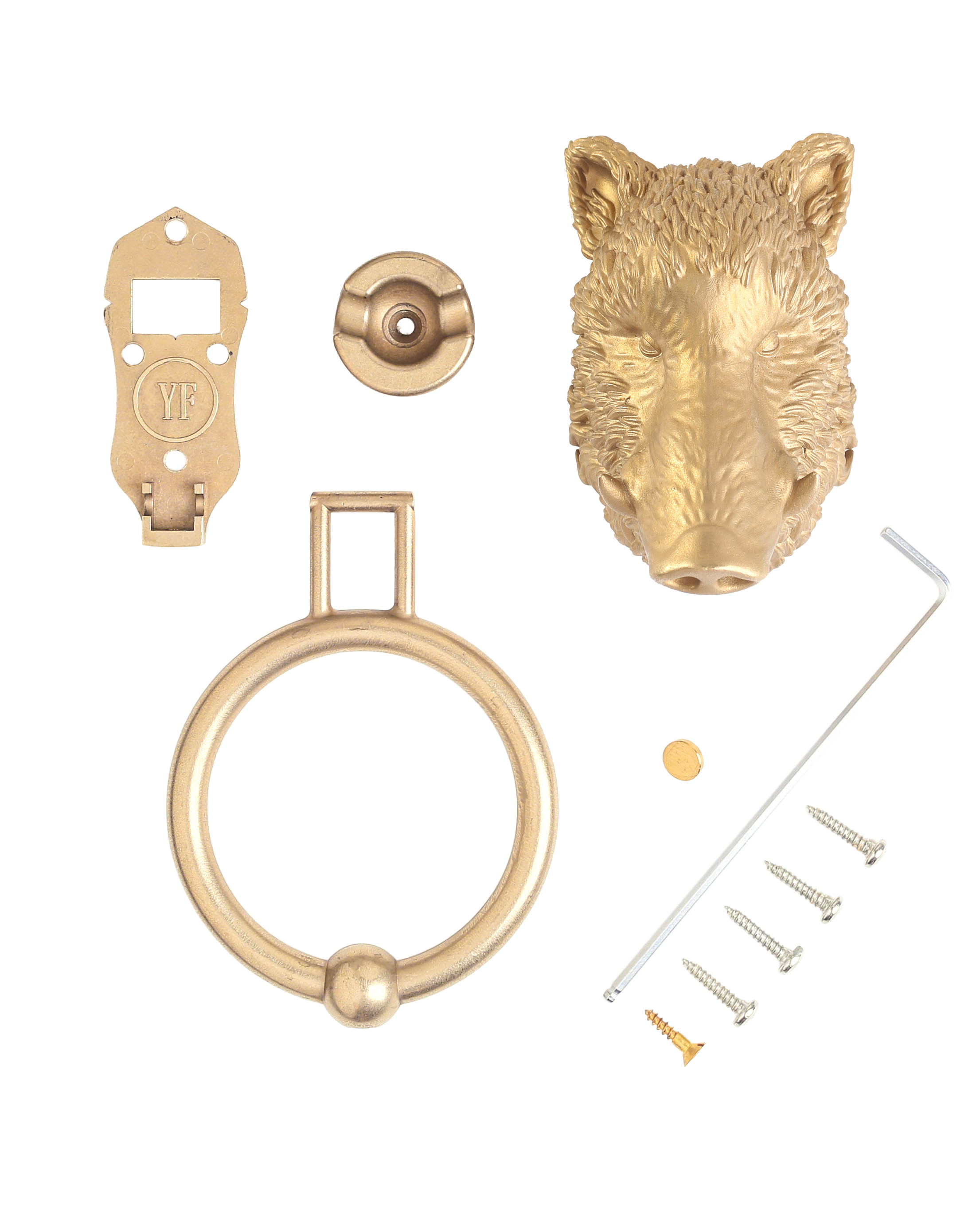 Each knocker is made from a marine-grade bronze alloy with the warm golden tone most people call brass. It arrives bright and will darken with time and touch. A bit of polish will bring it back.